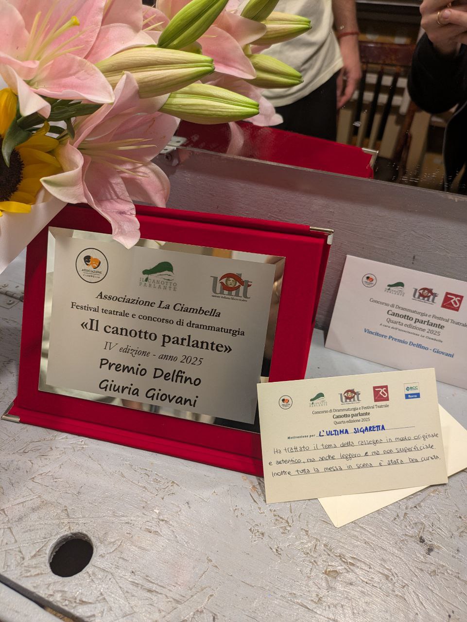 Vincitore del Premio Delfino – Giuria Giovani nel festival Il Canotto Parlante al Teatro Porta Portese di Roma promosso dall’associazione La Ciambella.